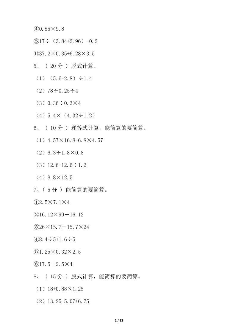 【期末专项突破】小学数学五年级上册-期末脱式计算专项突破练习(含答案)北师大版langhun2025-07-04更新关注私信5870【期末专项突破】小学数学五年级上册-期末脱式计算专项突破练习(含答案)北师大版此内容为付费资源,请付费后查看20积分自用会员免费副业代理免费登录购买大小144.22 KB页数13类型pdf付费资源 ——预览已结束,还剩11页未读——开通会员后可免费下载高清完整文档 THE END数学 喜欢就支持一下吧点赞0 分享QQ空间微博QQ好友海报分享复制链接收藏