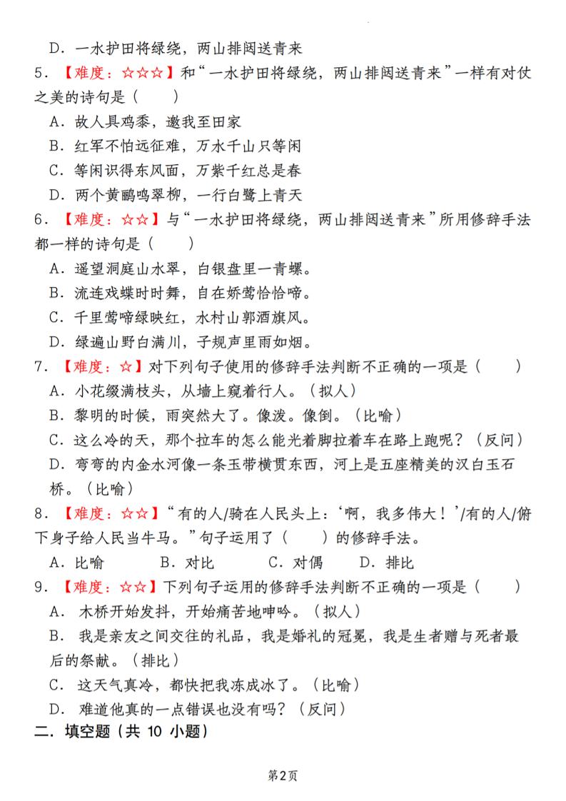 【期末真题分类复习专题(7)修辞手法辨析】六上语文langhun2025-07-04更新关注私信1860【期末真题分类复习专题(7)修辞手法辨析】六上语文此内容为付费资源,请付费后查看20积分自用会员免费副业代理免费登录购买大小6.29 MB页数12类型pdf付费资源 ——预览已结束,还剩10页未读——开通会员后可免费下载高清完整文档 THE END语文 喜欢就支持一下吧点赞0 分享QQ空间微博QQ好友海报分享复制链接收藏