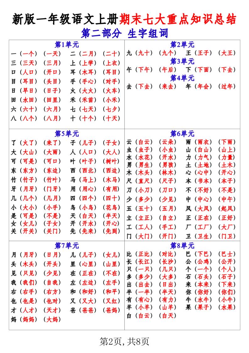 一上【2024新版-期末七大重点知识总结(8页)】一上语文langhun2025-07-04更新关注私信5070一上【2024新版-期末七大重点知识总结(8页)】一上语文此内容为付费资源,请付费后查看20积分自用会员免费副业代理免费登录购买大小5.97 MB页数8类型pdf付费资源 ——预览已结束,还剩6页未读——开通会员后可免费下载高清完整文档 THE END语文 喜欢就支持一下吧点赞0 分享QQ空间微博QQ好友海报分享复制链接收藏