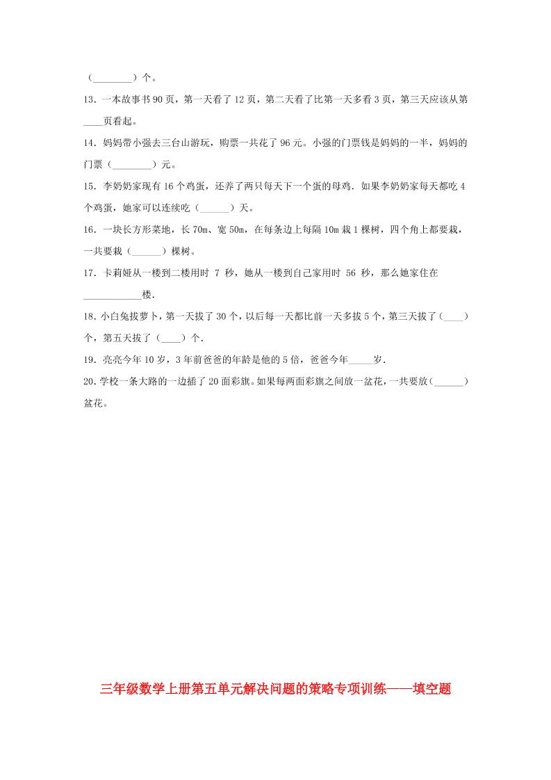 【题型专项特训】三年级数学上册第五单元解决问题的策略专项训练——填空题(苏教版,含答案)langhun2025-07-04更新关注私信3420【题型专项特训】三年级数学上册第五单元解决问题的策略专项训练——填空题(苏教版,含答案)此内容为付费资源,请付费后查看20积分自用会员免费副业代理免费登录购买大小87.99 KB页数4类型pdf付费资源 ——预览已结束,还剩2页未读——开通会员后可免费下载高清完整文档 THE END数学 喜欢就支持一下吧点赞0 分享QQ空间微博QQ好友海报分享复制链接收藏