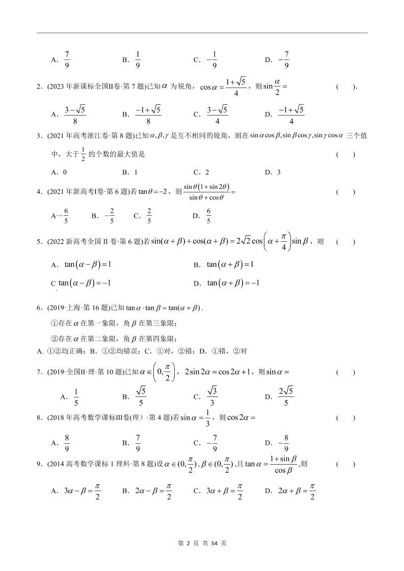145-高考数学十年(2014-2023)真题汇编:三角函数选择题(含答案解析)langhun2025-07-04更新关注私信3050145-高考数学十年(2014-2023)真题汇编:三角函数选择题(含答案解析)此内容为付费资源,请付费后查看20积分自用会员免费副业代理免费登录购买大小922.20 KB页数54类型pdf付费资源 ——预览已结束,还剩52页未读——开通会员后可免费下载高清完整文档 THE END综合资料 喜欢就支持一下吧点赞0 分享QQ空间微博QQ好友海报分享复制链接收藏