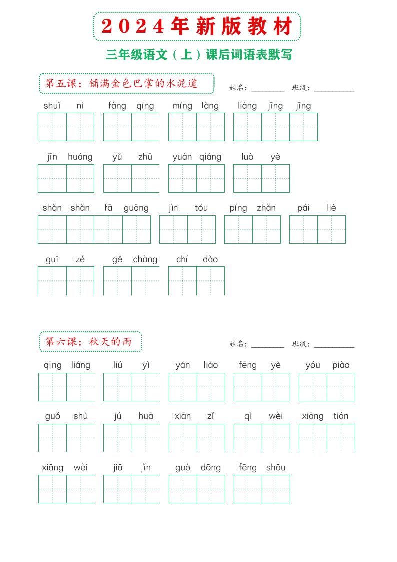 【2024年新版教材-课后词语默写表】三上语文langhun2025-07-04更新关注私信3710【2024年新版教材-课后词语默写表】三上语文此内容为付费资源,请付费后查看20积分自用会员免费副业代理免费登录购买大小7.90 MB页数16类型pdf付费资源 ——预览已结束,还剩14页未读——开通会员后可免费下载高清完整文档 THE END语文 喜欢就支持一下吧点赞0 分享QQ空间微博QQ好友海报分享复制链接收藏
