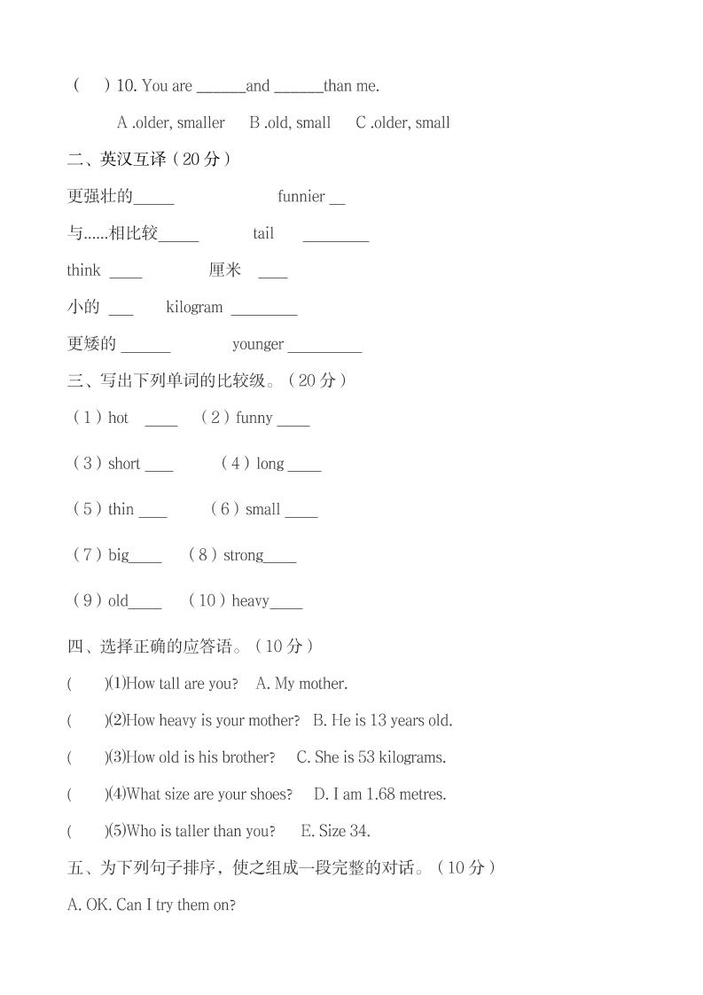【40分钟小卷,笔试】六年级下册英语单元测试卷-Unit1Howtallareyou人教PEP版(word,含答案)langhun2025-07-04更新关注私信1310【40分钟小卷,笔试】六年级下册英语单元测试卷-Unit1Howtallareyou人教PEP版(word,含答案)此内容为付费资源,请付费后查看20积分自用会员免费副业代理免费登录购买大小81.21 KB页数6类型pdf付费资源 ——预览已结束,还剩4页未读——开通会员后可免费下载高清完整文档 THE END英语 喜欢就支持一下吧点赞0 分享QQ空间微博QQ好友海报分享复制链接收藏
