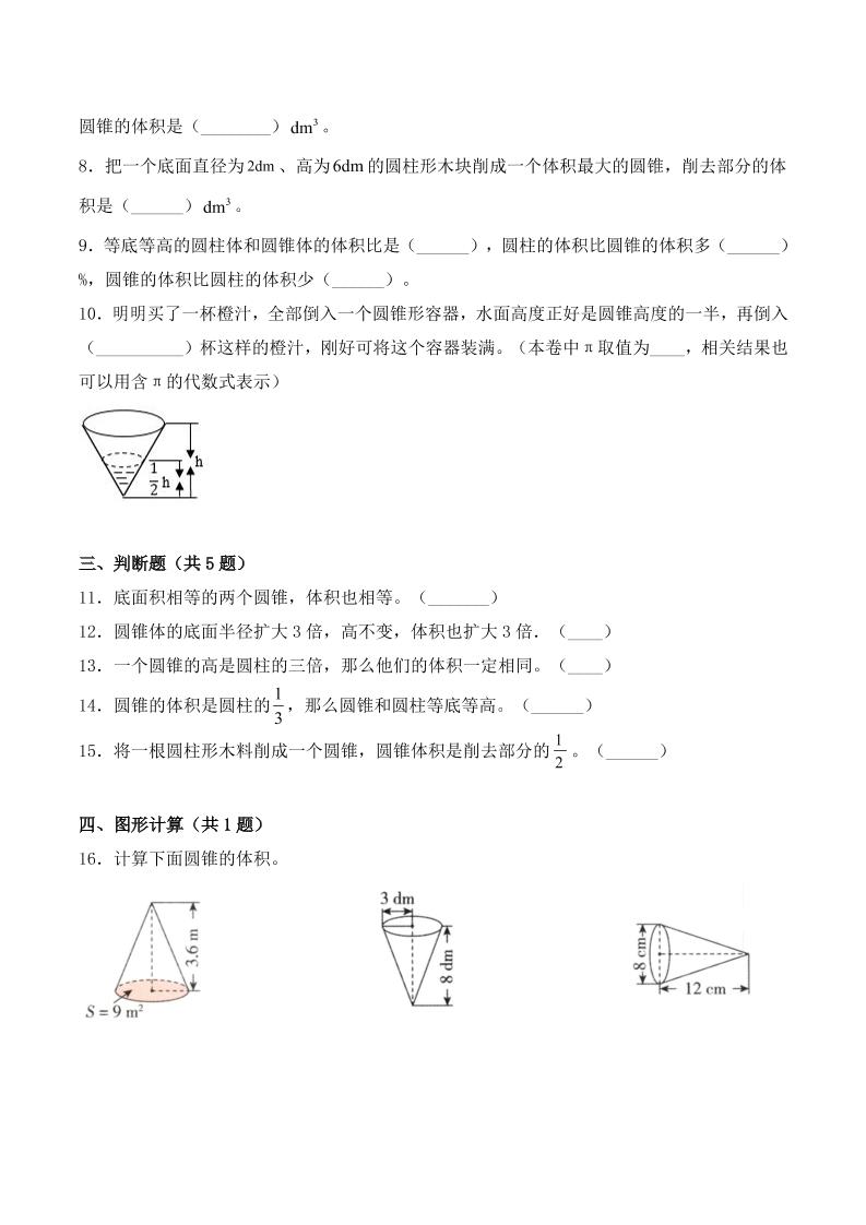 【提升能力】3.2.2圆锥的体积(同步练习)六年级下册数学学霸全能同步双基双练测人教版(含答案)langhun2025-07-04更新关注私信5240【提升能力】3.2.2圆锥的体积(同步练习)六年级下册数学学霸全能同步双基双练测人教版(含答案)此内容为付费资源,请付费后查看20积分自用会员免费副业代理免费登录购买大小239.31 KB页数6类型pdf付费资源 ——预览已结束,还剩4页未读——开通会员后可免费下载高清完整文档 THE END数学 喜欢就支持一下吧点赞0 分享QQ空间微博QQ好友海报分享复制链接收藏