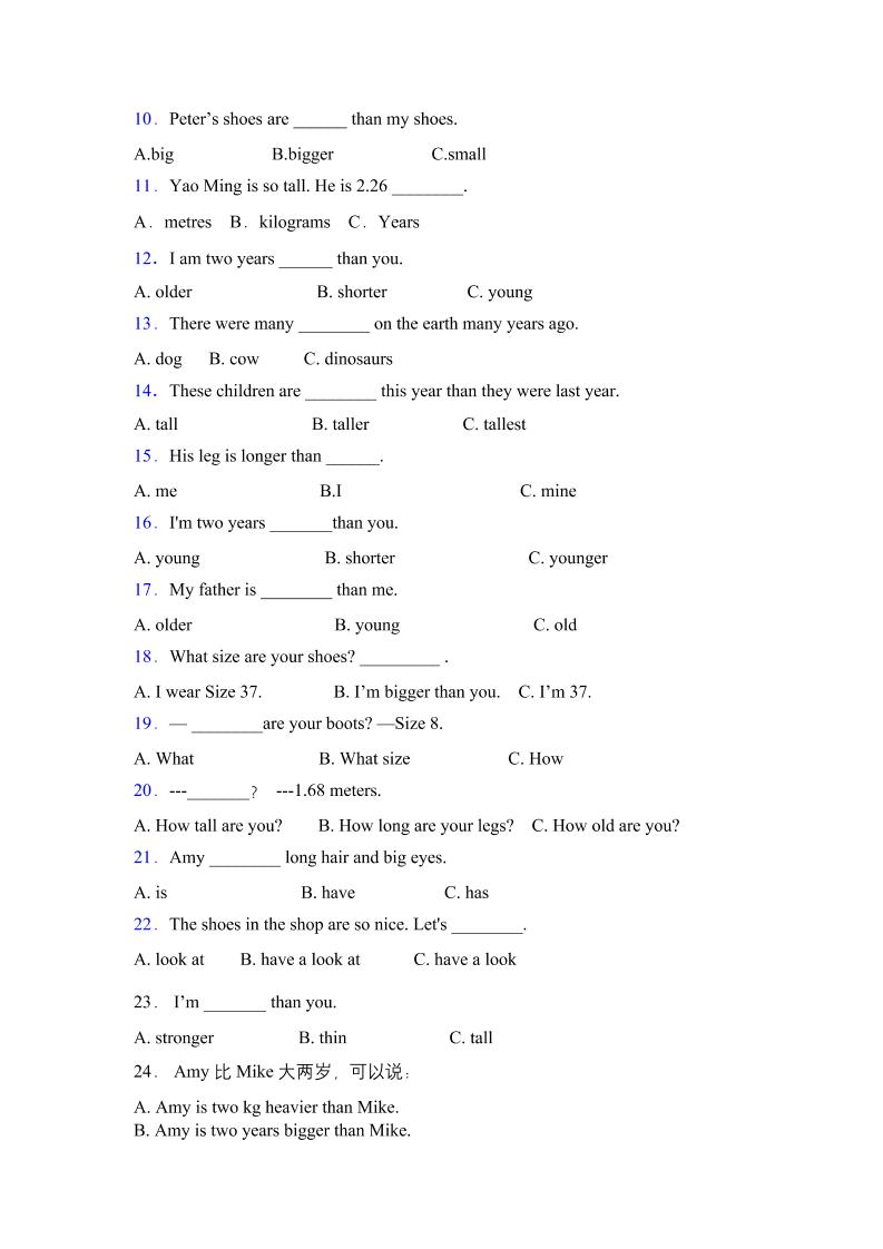 【语法练习】人教版(PEP)六年级英语下册专项突破练习-Unit1Howtallareyou(含答案)langhun2025-07-04更新关注私信3280【语法练习】人教版(PEP)六年级英语下册专项突破练习-Unit1Howtallareyou(含答案)此内容为付费资源,请付费后查看20积分自用会员免费副业代理免费登录购买大小180.55 KB页数7类型pdf付费资源 ——预览已结束,还剩5页未读——开通会员后可免费下载高清完整文档 THE END英语 喜欢就支持一下吧点赞0 分享QQ空间微博QQ好友海报分享复制链接收藏