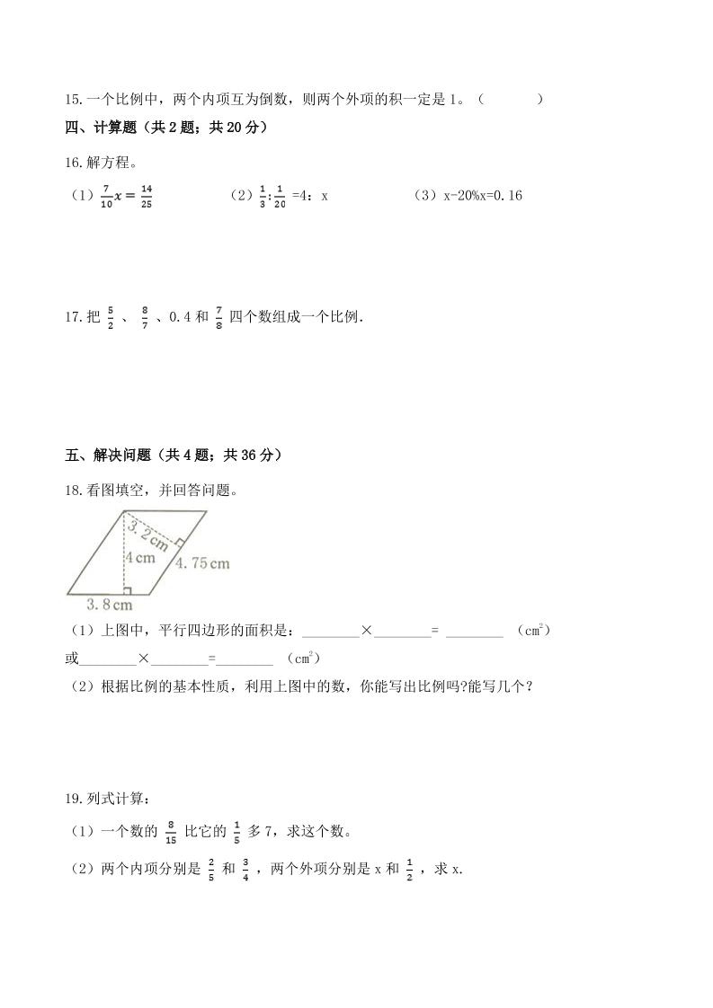 【夯实基础】4.1.2比例的基本性质(同步练习)六年级下册数学学霸全能同步双基双练测人教版(含答案)langhun2025-07-04更新关注私信3670【夯实基础】4.1.2比例的基本性质(同步练习)六年级下册数学学霸全能同步双基双练测人教版(含答案)此内容为付费资源,请付费后查看20积分自用会员免费副业代理免费登录购买大小137.66 KB页数6类型pdf付费资源 ——预览已结束,还剩4页未读——开通会员后可免费下载高清完整文档 THE END数学 喜欢就支持一下吧点赞0 分享QQ空间微博QQ好友海报分享复制链接收藏