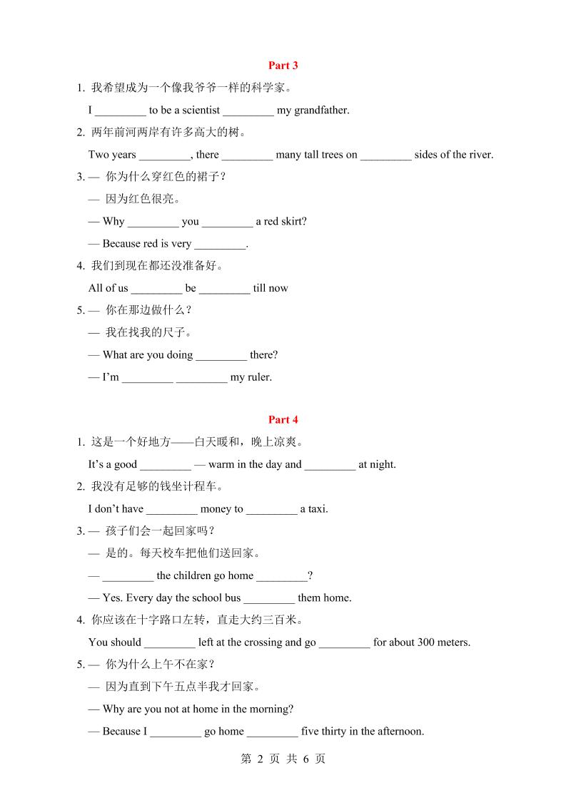 六下英语总复习专项03汉译英langhun2025-07-04更新关注私信3350六下英语总复习专项03汉译英此内容为付费资源,请付费后查看20积分自用会员免费副业代理免费登录购买大小150.30 KB页数6类型pdf付费资源 ——预览已结束,还剩4页未读——开通会员后可免费下载高清完整文档 THE END英语 喜欢就支持一下吧点赞0 分享QQ空间微博QQ好友海报分享复制链接收藏