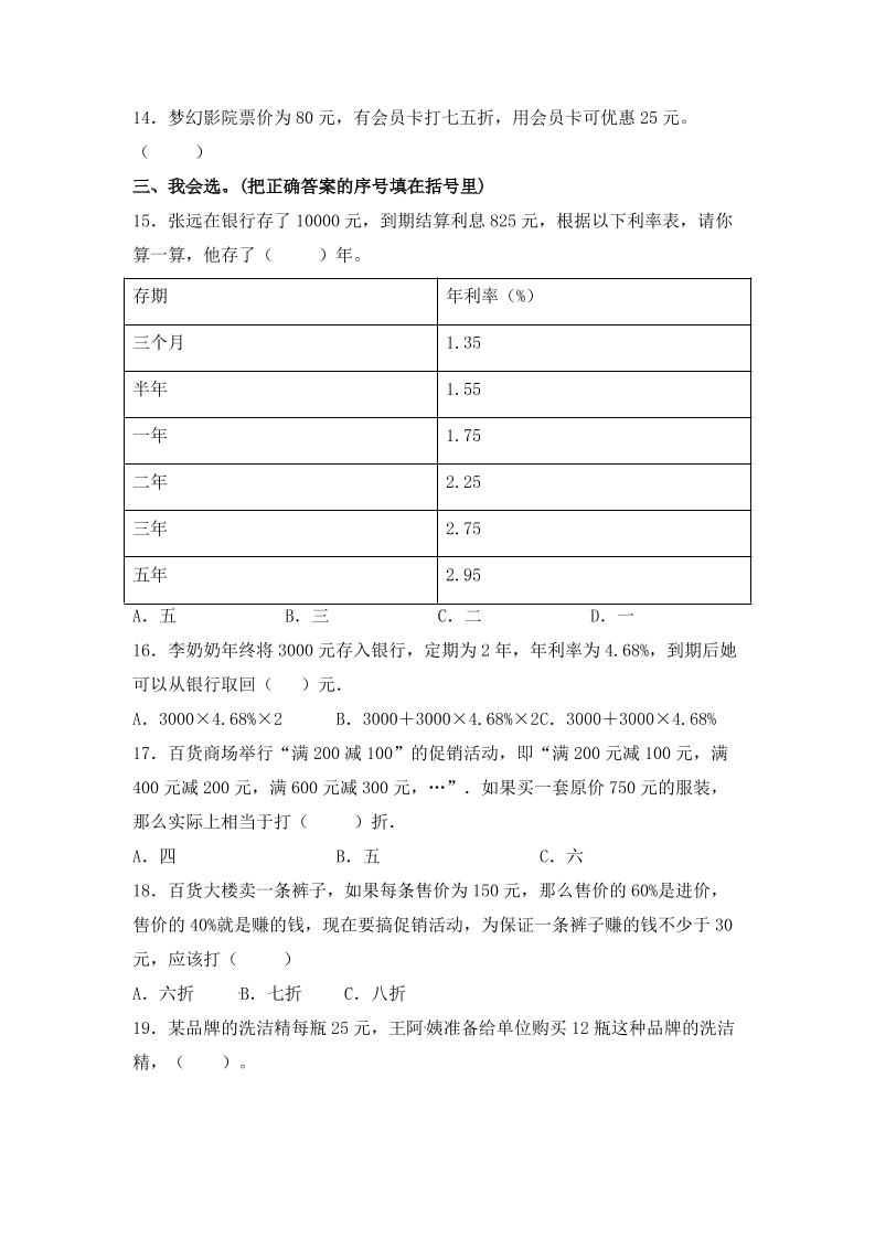 六下数学【单元AB卷】六年级下册数学试题-第二单元百分数(二)单元检测试题A卷人教版(含答案)langhun2025-07-04更新关注私信5350六下数学【单元AB卷】六年级下册数学试题-第二单元百分数(二)单元检测试题A卷人教版(含答案)此内容为付费资源,请付费后查看20积分自用会员免费副业代理免费登录购买大小186.14 KB页数8类型pdf付费资源 ——预览已结束,还剩6页未读——开通会员后可免费下载高清完整文档 THE END数学 喜欢就支持一下吧点赞0 分享QQ空间微博QQ好友海报分享复制链接收藏