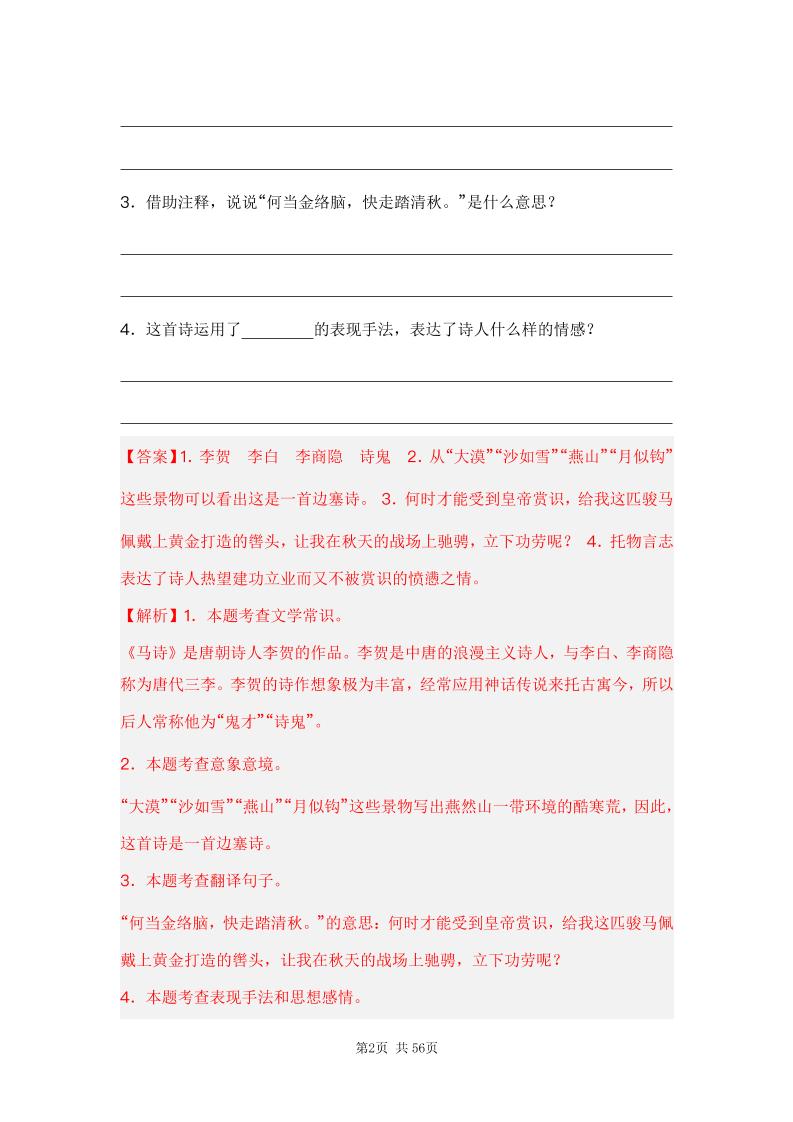 六下语文专题16诗词曲鉴赏阅读(解析版)备考2024年小升初语文真题知识点汇编(全国版)langhun2025-07-04更新关注私信1510六下语文专题16诗词曲鉴赏阅读(解析版)备考2024年小升初语文真题知识点汇编(全国版)此内容为付费资源,请付费后查看20积分自用会员免费副业代理免费登录购买大小1.45 MB页数56类型pdf付费资源 ——预览已结束,还剩54页未读——开通会员后可免费下载高清完整文档 THE END语文 喜欢就支持一下吧点赞0 分享QQ空间微博QQ好友海报分享复制链接收藏