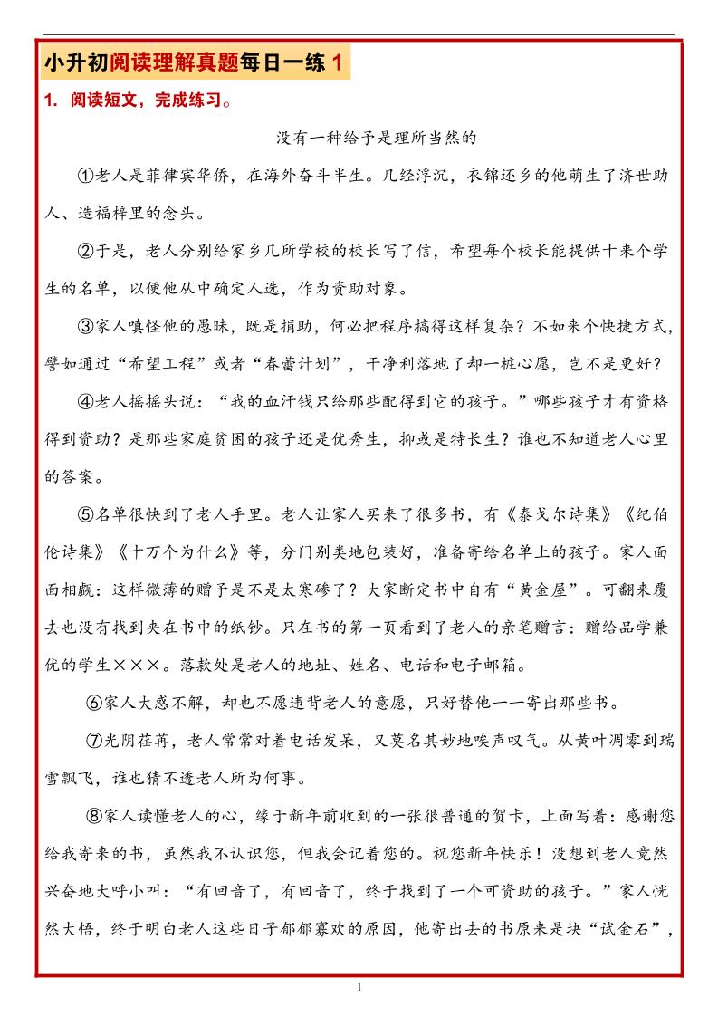 历年语文小升初阅读理解真题每日一练langhun2025-07-04更新关注私信4180历年语文小升初阅读理解真题每日一练此内容为付费资源,请付费后查看20积分自用会员免费副业代理免费登录购买大小2.48 MB页数143类型pdf付费资源 ——预览已结束,还剩141页未读——开通会员后可免费下载高清完整文档 THE END语文复习 喜欢就支持一下吧点赞0 分享QQ空间微博QQ好友海报分享复制链接收藏