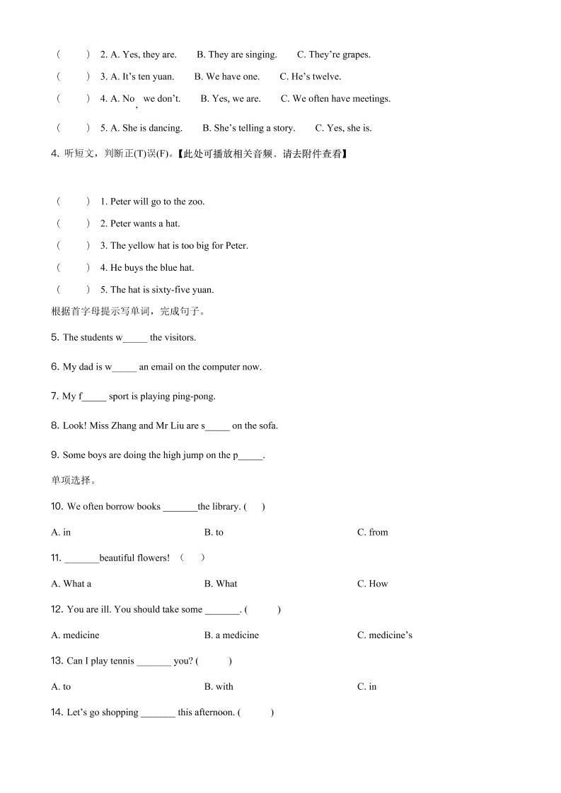 五年级下册英语人教精通版精品解析:2020-2021学年人教精通版五年级下册期末检测英语试卷(含听力)(原卷版)langhun2025-07-04更新关注私信5170五年级下册英语人教精通版精品解析:2020-2021学年人教精通版五年级下册期末检测英语试卷(含听力)(原卷版)此内容为付费资源,请付费后查看20积分自用会员免费副业代理免费登录购买大小662.19 KB页数7类型pdf付费资源 ——预览已结束,还剩5页未读——开通会员后可免费下载高清完整文档 THE END英语 喜欢就支持一下吧点赞0 分享QQ空间微博QQ好友海报分享复制链接收藏