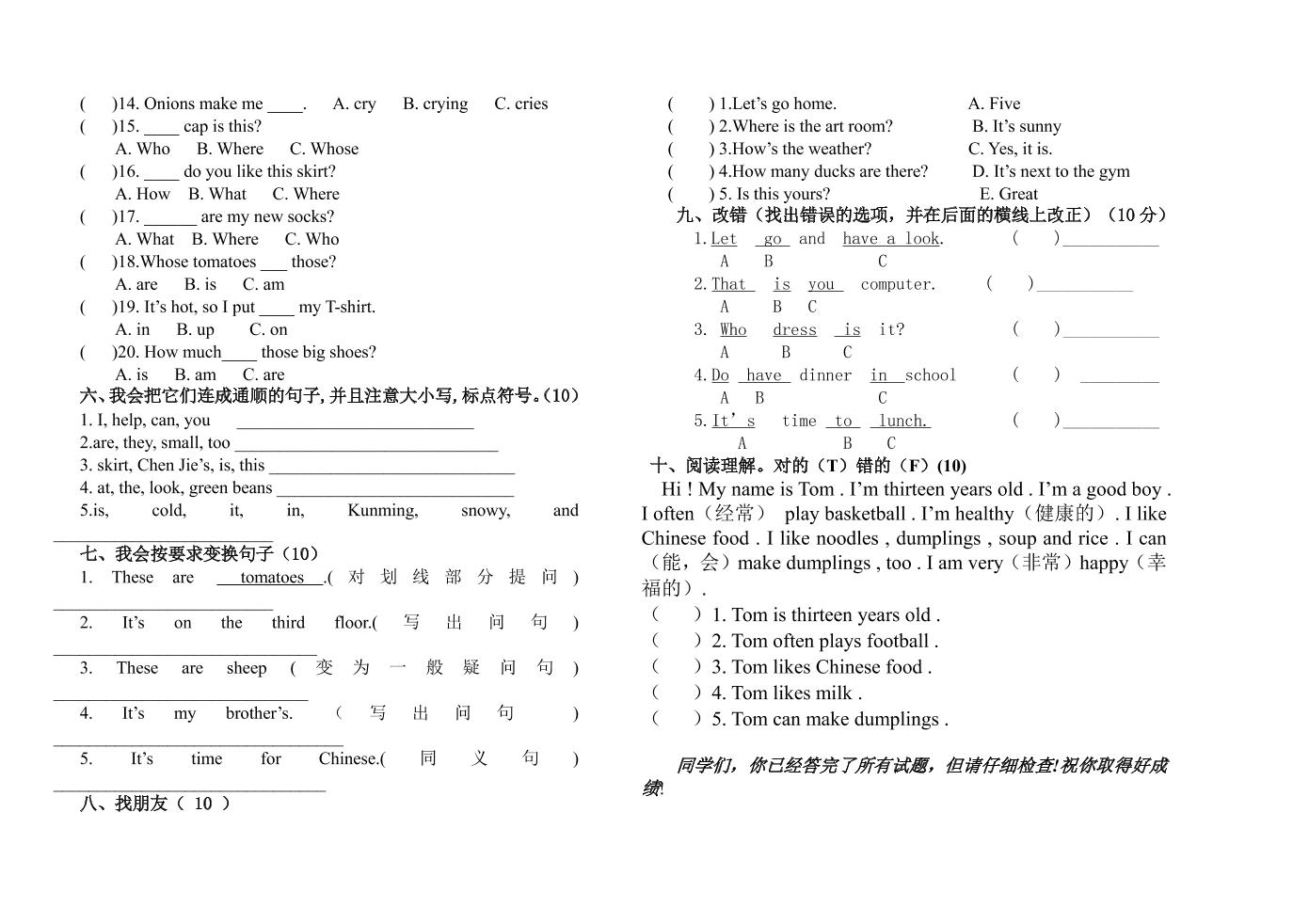 四下丨英语期末试卷(11)(人教精通版)langhun2025-07-04更新关注私信5780四下丨英语期末试卷(11)(人教精通版)此内容为付费资源,请付费后查看20积分自用会员免费副业代理免费登录购买大小286.71 KB页数3类型pdf付费资源 ——预览已结束,还剩1页未读——开通会员后可免费下载高清完整文档 THE END英语 喜欢就支持一下吧点赞0 分享QQ空间微博QQ好友海报分享复制链接收藏