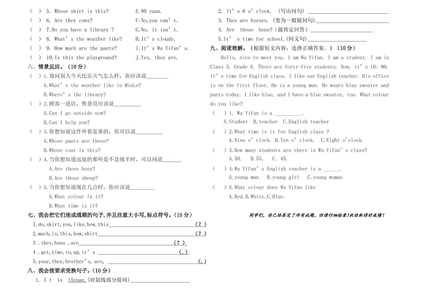 四下丨英语期末试卷(8)(人教精通版)langhun2025-07-04更新关注私信1920四下丨英语期末试卷(8)(人教精通版)此内容为付费资源,请付费后查看20积分自用会员免费副业代理免费登录购买大小186.03 KB页数3类型pdf付费资源 ——预览已结束,还剩1页未读——开通会员后可免费下载高清完整文档 THE END英语 喜欢就支持一下吧点赞0 分享QQ空间微博QQ好友海报分享复制链接收藏