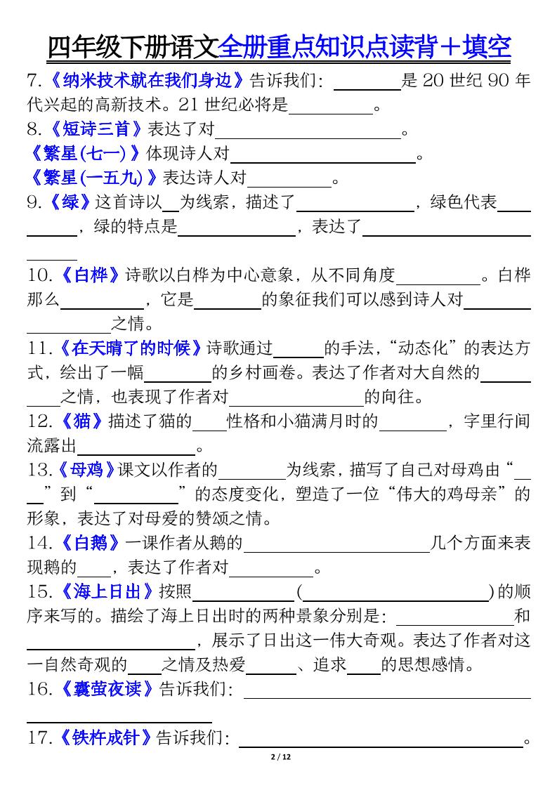 【全册重点知识读背+填空】四下语文langhun2025-07-04更新关注私信3460【全册重点知识读背+填空】四下语文此内容为付费资源,请付费后查看20积分自用会员免费副业代理免费登录购买大小24.88 MB页数24类型pdf付费资源 ——预览已结束,还剩22页未读——开通会员后可免费下载高清完整文档 THE END语文 喜欢就支持一下吧点赞0 分享QQ空间微博QQ好友海报分享复制链接收藏