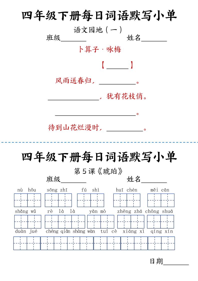 【每日词语默写小单】四下语文langhun2025-07-04更新关注私信4840【每日词语默写小单】四下语文此内容为付费资源,请付费后查看20积分自用会员免费副业代理免费登录购买大小507.25 KB页数10类型pdf付费资源 ——预览已结束,还剩8页未读——开通会员后可免费下载高清完整文档 THE END语文 喜欢就支持一下吧点赞0 分享QQ空间微博QQ好友海报分享复制链接收藏