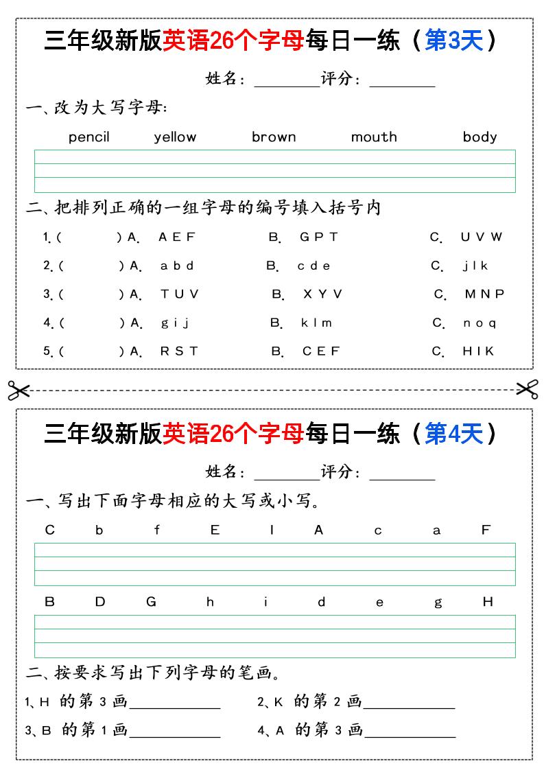 三年级英语【26个字母每日一练】langhun2025-07-04更新关注私信2050三年级英语【26个字母每日一练】此内容为付费资源,请付费后查看20积分自用会员免费副业代理免费登录购买大小355.90 KB页数12类型pdf付费资源 ——预览已结束,还剩10页未读——开通会员后可免费下载高清完整文档 THE END英语 喜欢就支持一下吧点赞0 分享QQ空间微博QQ好友海报分享复制链接收藏