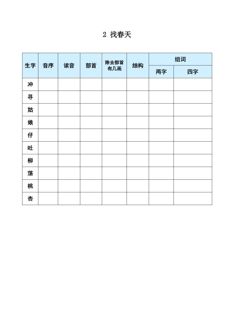 【每课生字预习表】二下语文langhun2025-07-04更新关注私信2180【每课生字预习表】二下语文此内容为付费资源,请付费后查看20积分自用会员免费副业代理免费登录购买大小234.34 KB页数29类型pdf付费资源 ——预览已结束,还剩27页未读——开通会员后可免费下载高清完整文档 THE END语文 喜欢就支持一下吧点赞0 分享QQ空间微博QQ好友海报分享复制链接收藏