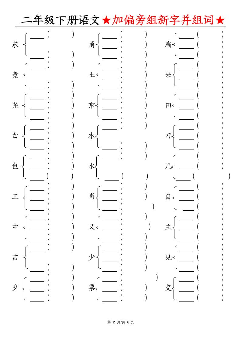 【加偏旁部首组新字并组词】二下语文langhun2025-07-04更新关注私信3980【加偏旁部首组新字并组词】二下语文此内容为付费资源,请付费后查看20积分自用会员免费副业代理免费登录购买大小10.32 MB页数12类型pdf付费资源 ——预览已结束,还剩10页未读——开通会员后可免费下载高清完整文档 THE END语文 喜欢就支持一下吧点赞0 分享QQ空间微博QQ好友海报分享复制链接收藏