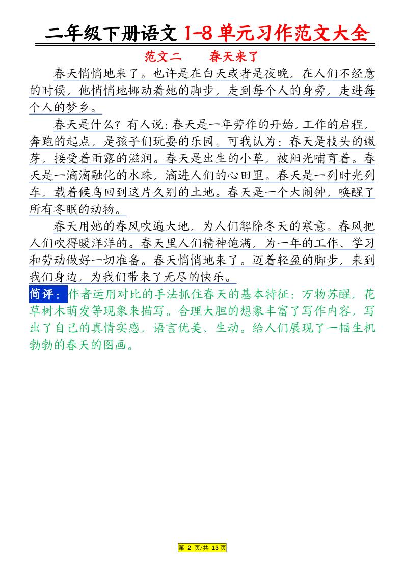 【1-8单元习作范文大全】二下语文langhun2025-07-04更新关注私信3670【1-8单元习作范文大全】二下语文此内容为付费资源,请付费后查看20积分自用会员免费副业代理免费登录购买大小448.11 KB页数13类型pdf付费资源 ——预览已结束,还剩11页未读——开通会员后可免费下载高清完整文档 THE END语文 喜欢就支持一下吧点赞0 分享QQ空间微博QQ好友海报分享复制链接收藏