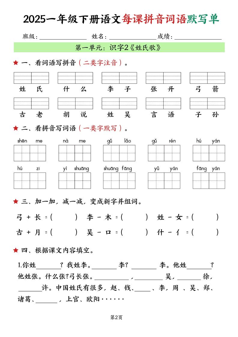 一年级(下)语文每课默写单(完整)langhun2025-07-04更新关注私信5080一年级(下)语文每课默写单(完整)此内容为付费资源,请付费后查看20积分自用会员免费副业代理免费登录购买大小9.05 MB页数36类型pdf付费资源 ——预览已结束,还剩34页未读——开通会员后可免费下载高清完整文档 THE END语文 喜欢就支持一下吧点赞0 分享QQ空间微博QQ好友海报分享复制链接收藏