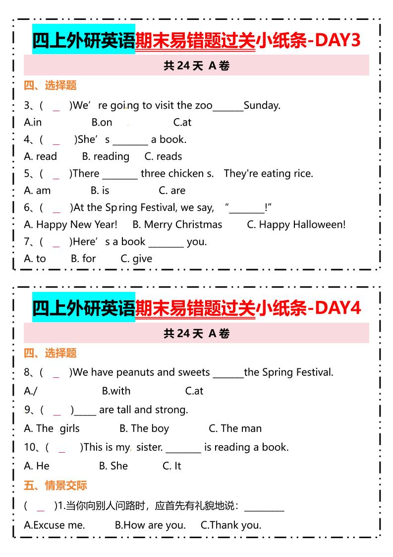 四上英语外研三起四上外研版三上点英语【期末易错题过关小纸条】langhun2025-07-04更新关注私信18712四上英语外研三起四上外研版三上点英语【期末易错题过关小纸条】此内容为付费资源,请付费后查看20积分自用会员免费副业代理免费登录购买大小562.06 KB页数24类型pdf付费资源 ——预览已结束,还剩22页未读——开通会员后可免费下载高清完整文档 THE END英语 喜欢就支持一下吧点赞12 分享QQ空间微博QQ好友海报分享复制链接收藏