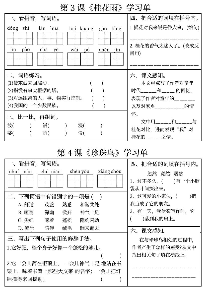 【学习单(完整版)】五上语文langhun2025-07-04更新关注私信2020【学习单(完整版)】五上语文此内容为付费资源,请付费后查看20积分自用会员免费副业代理免费登录购买大小2.01 MB页数14类型pdf付费资源 ——预览已结束,还剩12页未读——开通会员后可免费下载高清完整文档 THE END语文 喜欢就支持一下吧点赞0 分享QQ空间微博QQ好友海报分享复制链接收藏
