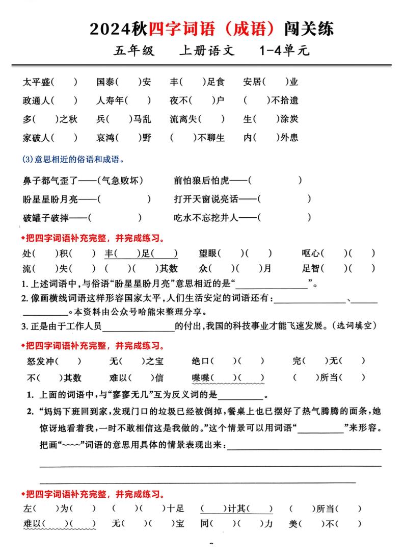 【期中复习考查1-4单元《四字词语、成语》闯关复习练】五上语文langhun2025-07-04更新关注私信1780【期中复习考查1-4单元《四字词语、成语》闯关复习练】五上语文此内容为付费资源,请付费后查看20积分自用会员免费副业代理免费登录购买大小3.60 MB页数9类型pdf付费资源 ——预览已结束,还剩7页未读——开通会员后可免费下载高清完整文档 THE END语文 喜欢就支持一下吧点赞0 分享QQ空间微博QQ好友海报分享复制链接收藏