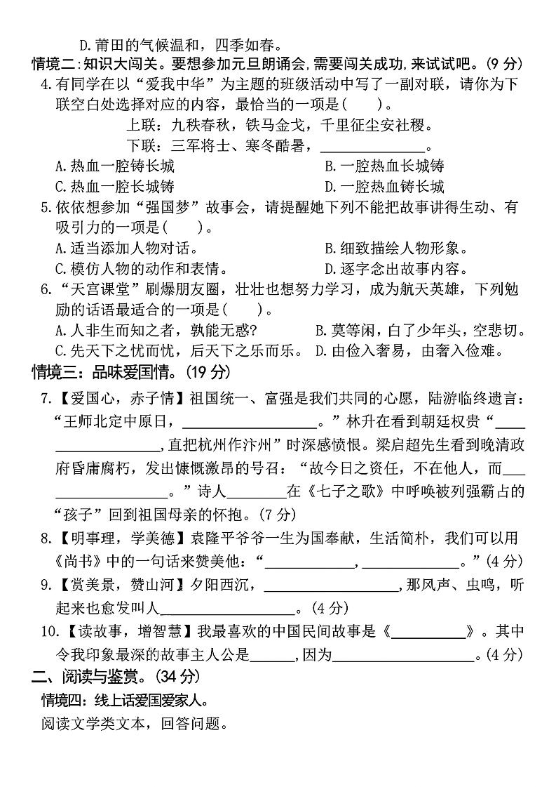 【2024-2025学年期末真题测试卷】五上语文langhun2025-07-04更新关注私信2720【2024-2025学年期末真题测试卷】五上语文此内容为付费资源,请付费后查看20积分自用会员免费副业代理免费登录购买大小2.82 MB页数5类型pdf付费资源 ——预览已结束,还剩3页未读——开通会员后可免费下载高清完整文档 THE END语文 喜欢就支持一下吧点赞0 分享QQ空间微博QQ好友海报分享复制链接收藏