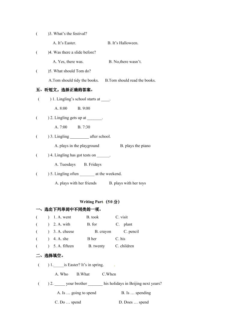 五上英语人外研一起【1】【精品】小学英语五年级上英语期末卷(答案+解析+听力录音)langhun2025-07-04更新关注私信3390五上英语人外研一起【1】【精品】小学英语五年级上英语期末卷(答案+解析+听力录音)此内容为付费资源,请付费后查看20积分自用会员免费副业代理免费登录购买大小596.36 KB页数8类型pdf付费资源 ——预览已结束,还剩6页未读——开通会员后可免费下载高清完整文档 THE END英语 喜欢就支持一下吧点赞0 分享QQ空间微博QQ好友海报分享复制链接收藏