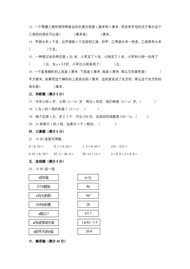 【单元AB卷】五年级上册数学分层训练B卷-第八单元用字母表示数(单元测试)(苏教版,含答案)langhun2025-07-04更新关注私信5050【单元AB卷】五年级上册数学分层训练B卷-第八单元用字母表示数(单元测试)(苏教版,含答案)此内容为付费资源,请付费后查看20积分自用会员免费副业代理免费登录购买大小356.30 KB页数13类型pdf付费资源 ——预览已结束,还剩11页未读——开通会员后可免费下载高清完整文档 THE END数学 喜欢就支持一下吧点赞0 分享QQ空间微博QQ好友海报分享复制链接收藏