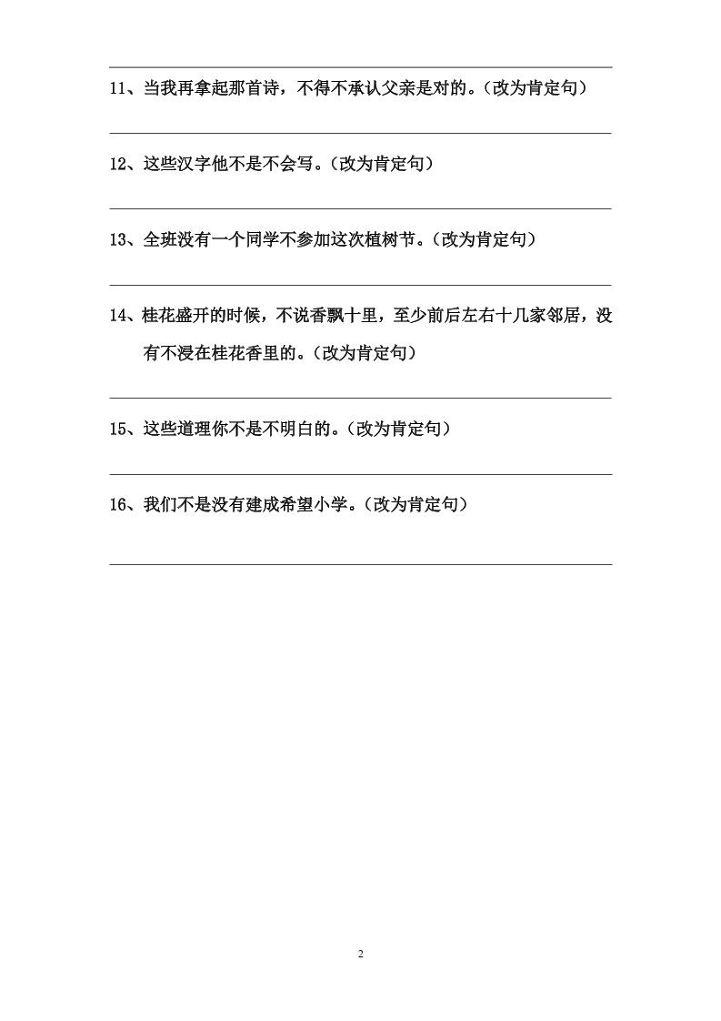 语文高年级通用12.双重否定句、肯定句训练(三至七)langhun2025-07-04更新关注私信2840语文高年级通用12.双重否定句、肯定句训练(三至七)此内容为付费资源,请付费后查看20积分自用会员免费副业代理免费登录购买大小154.42 KB页数7类型pdf付费资源 ——预览已结束,还剩5页未读——开通会员后可免费下载高清完整文档 THE END语文 喜欢就支持一下吧点赞0 分享QQ空间微博QQ好友海报分享复制链接收藏