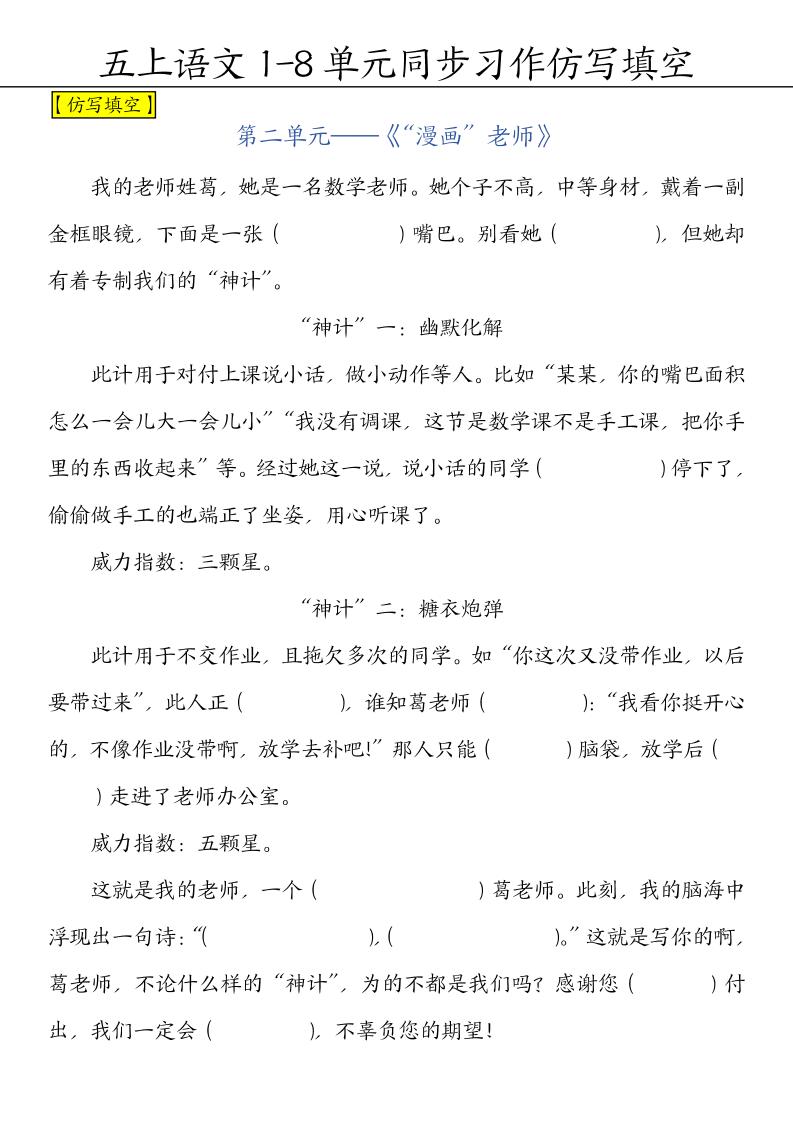 五上语文【1-8单元习作范文(空白版)】五上语文langhun2025-07-04更新关注私信1220五上语文【1-8单元习作范文(空白版)】五上语文此内容为付费资源,请付费后查看20积分自用会员免费副业代理免费登录购买大小315.62 KB页数8类型pdf付费资源 ——预览已结束,还剩6页未读——开通会员后可免费下载高清完整文档 THE END语文 喜欢就支持一下吧点赞0 分享QQ空间微博QQ好友海报分享复制链接收藏