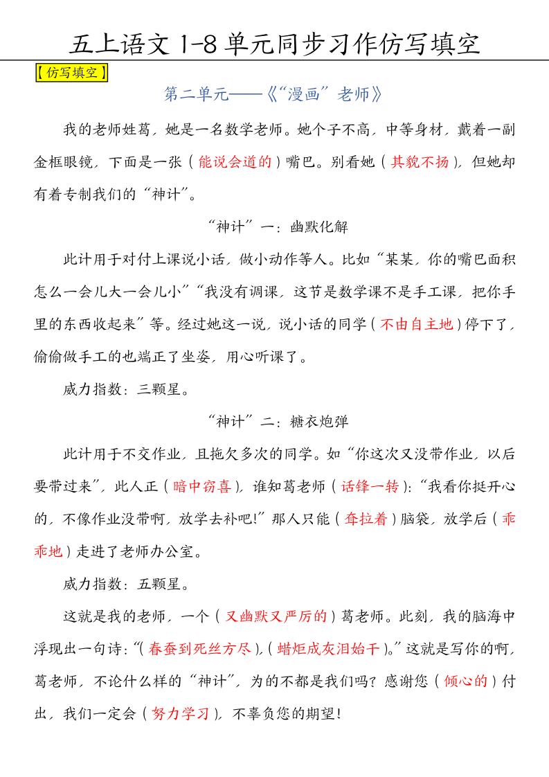 五上语文【1-8单元习作范文(答案)】五上语文langhun2025-07-04更新关注私信1780五上语文【1-8单元习作范文(答案)】五上语文此内容为付费资源,请付费后查看20积分自用会员免费副业代理免费登录购买大小315.59 KB页数8类型pdf付费资源 ——预览已结束,还剩6页未读——开通会员后可免费下载高清完整文档 THE END语文 喜欢就支持一下吧点赞0 分享QQ空间微博QQ好友海报分享复制链接收藏